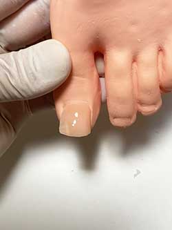 爪の厚みを整え補正具の密着を高めるために削ります。 -